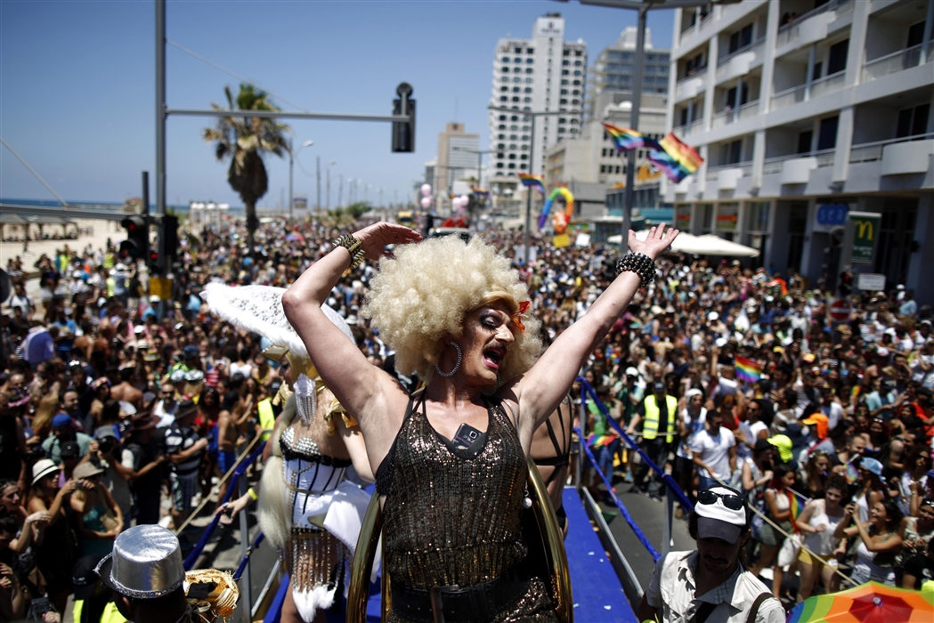 A drag queen performs the 'Tel Aviv Gay Pride Parade 2015' in Tel Aviv, Israel, 12 June 2015.