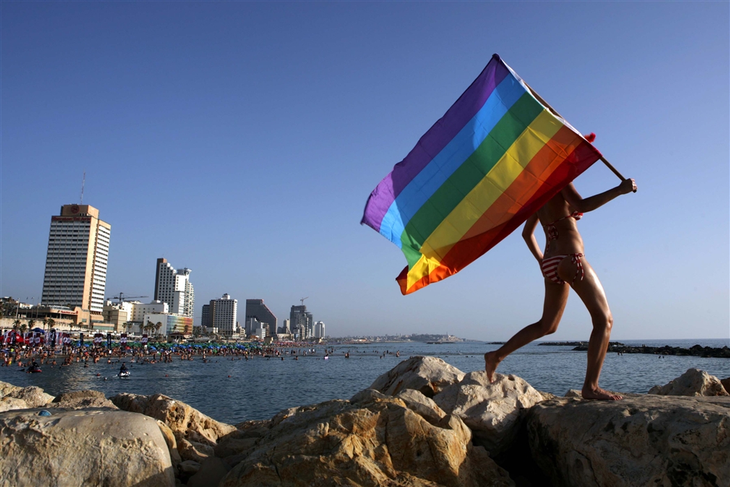 A young woman carries a rainbow flag as they participate in the annual Gay Pride Parade in Tel Aviv, Israel, 10 June 2011.